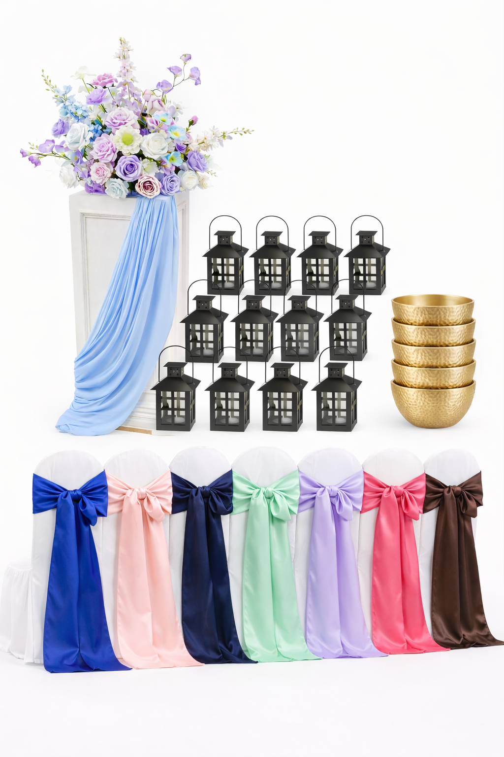 We offer custom backdrops, balloon décor, wedding arches, floral walls, tents, tables, chairs, and full-service event styling for weddings, birthdays, proposals, and special events.