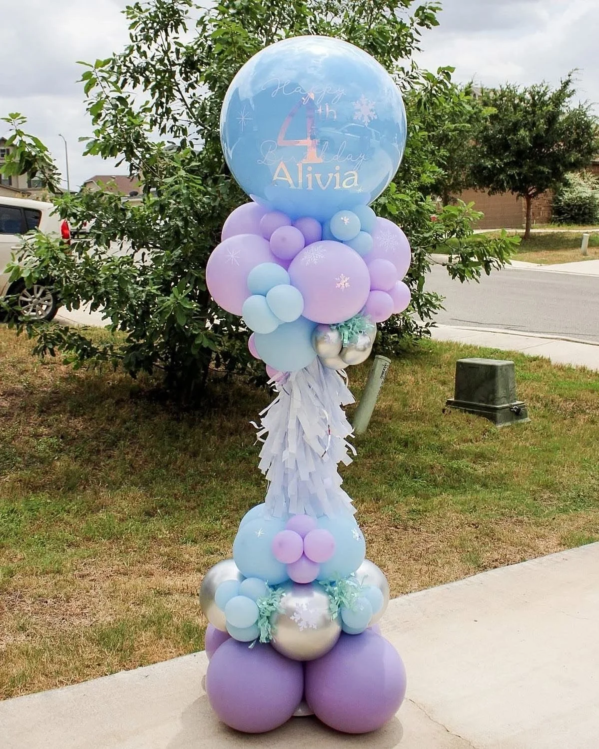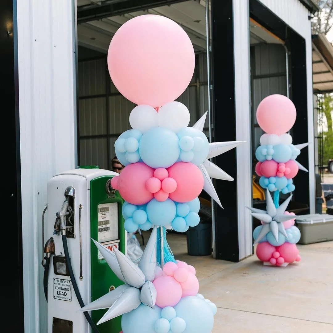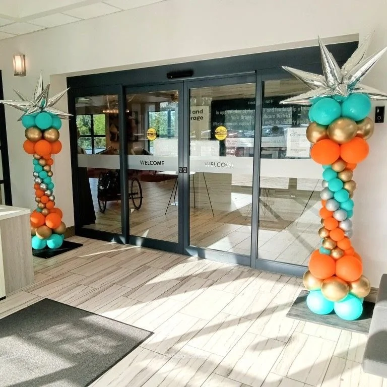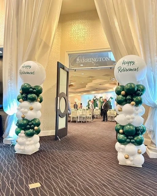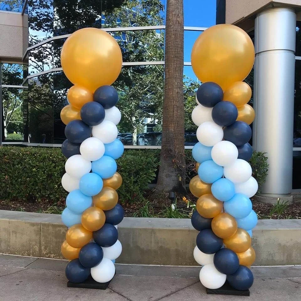 6.5ft balloon tower on 1 side and 3.5ft balloon tower on the other side (includes mylars and latex)
