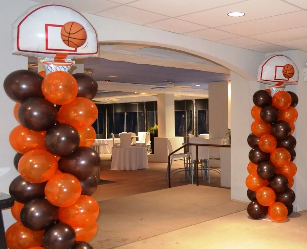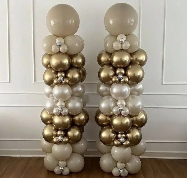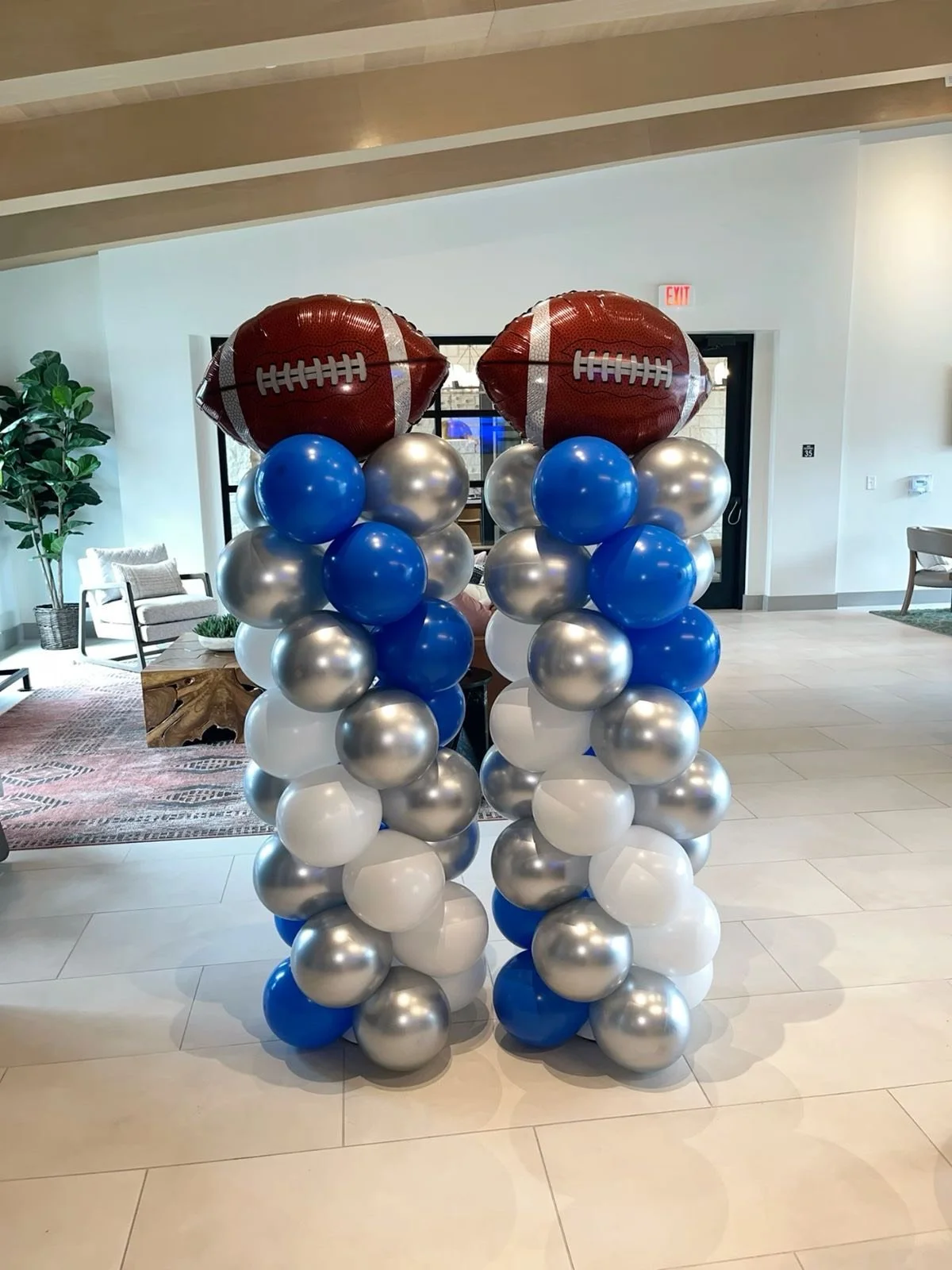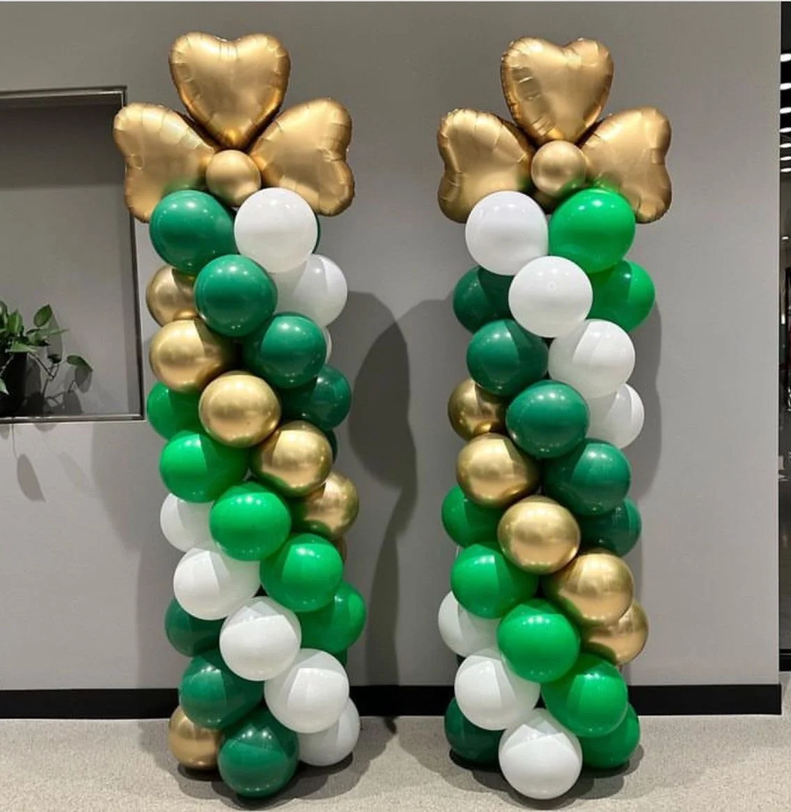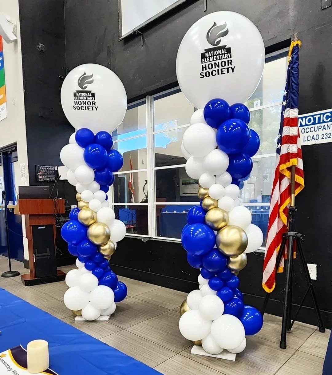 6.5ft balloon tower on 1 side and 3.5ft balloon tower on the other side (includes mylars and latex)