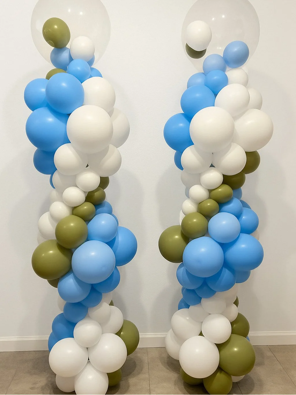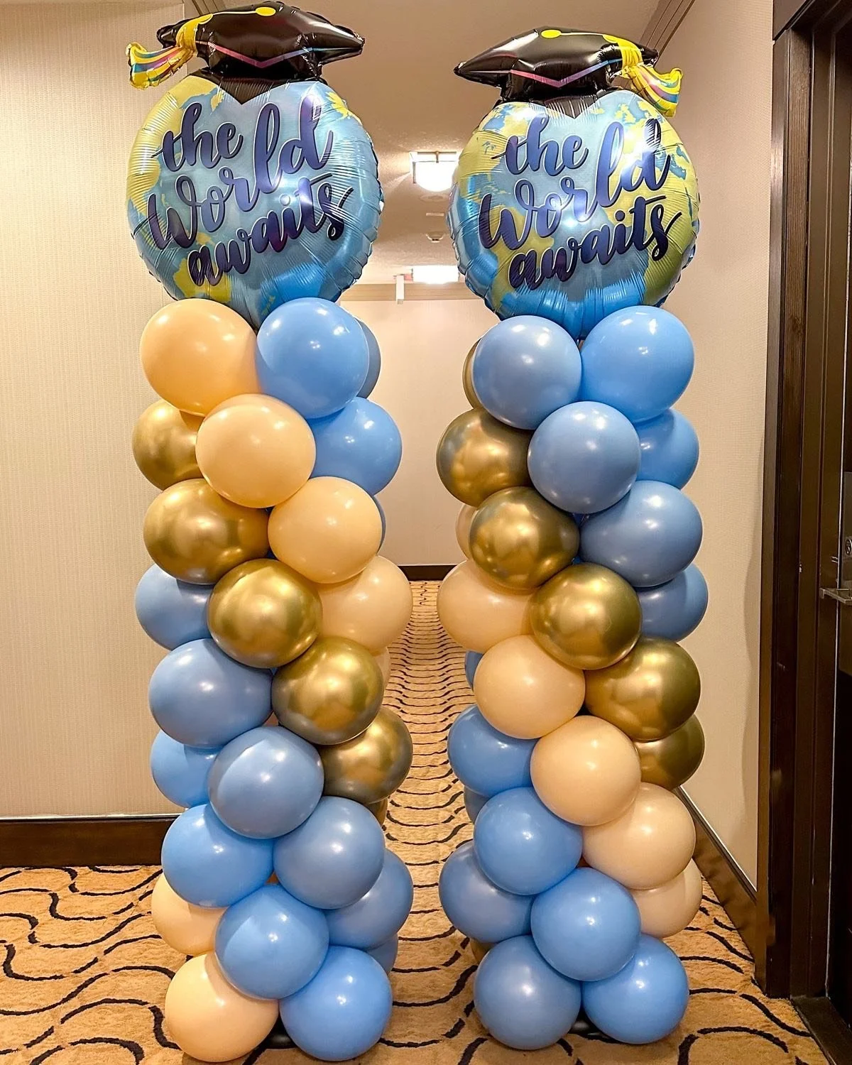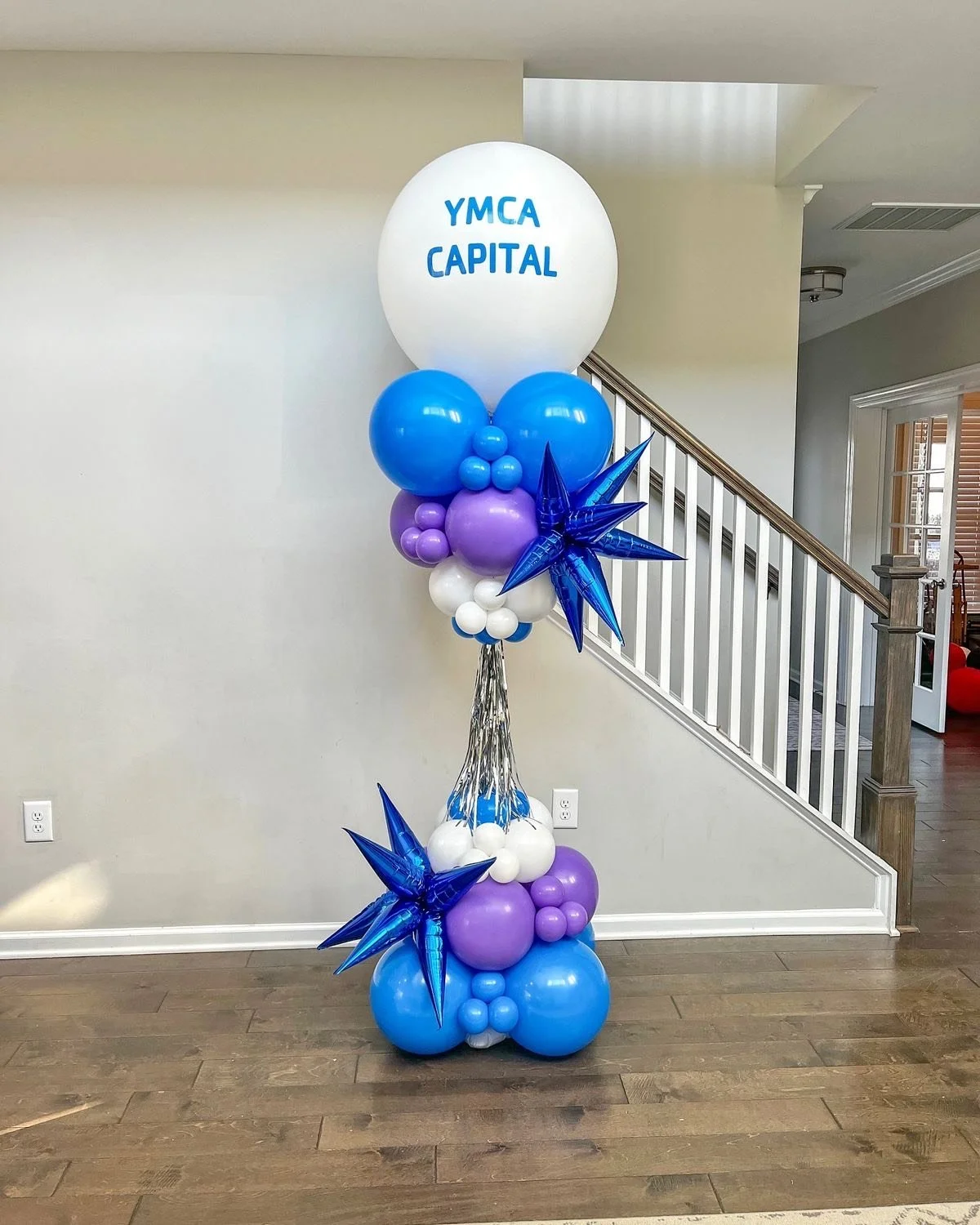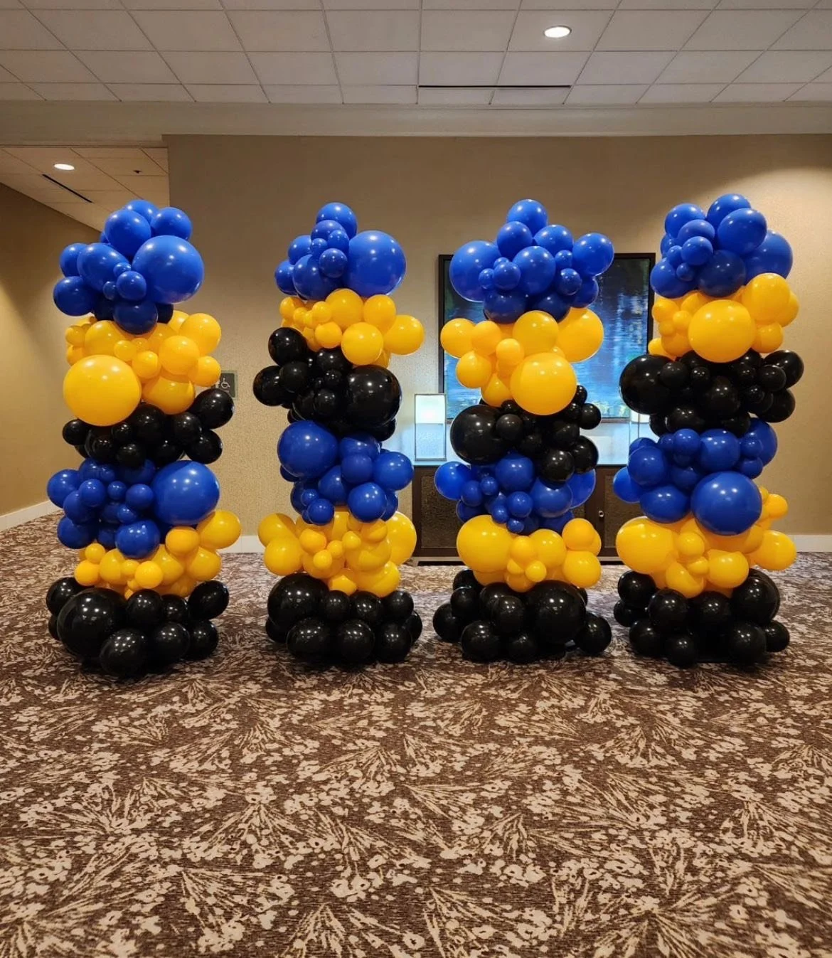 6.5ft balloon tower on 1 side and 3.5ft balloon tower on the other side (includes mylars and latex)